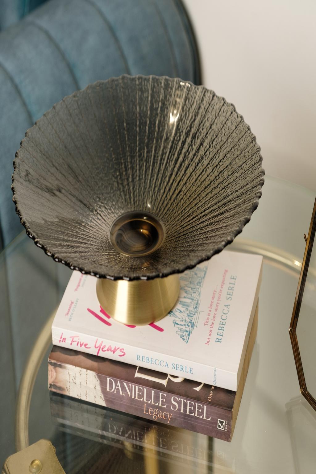 Discover understated luxury with the Opal Round Platter Large by Invoke Home and Living — where modern design meets timeless sophistication. Handcrafted with a textured smoky grey glass top and a brushed gold-finish base, this piece is designed to make a statement on your coffee table, console, or dining setup.