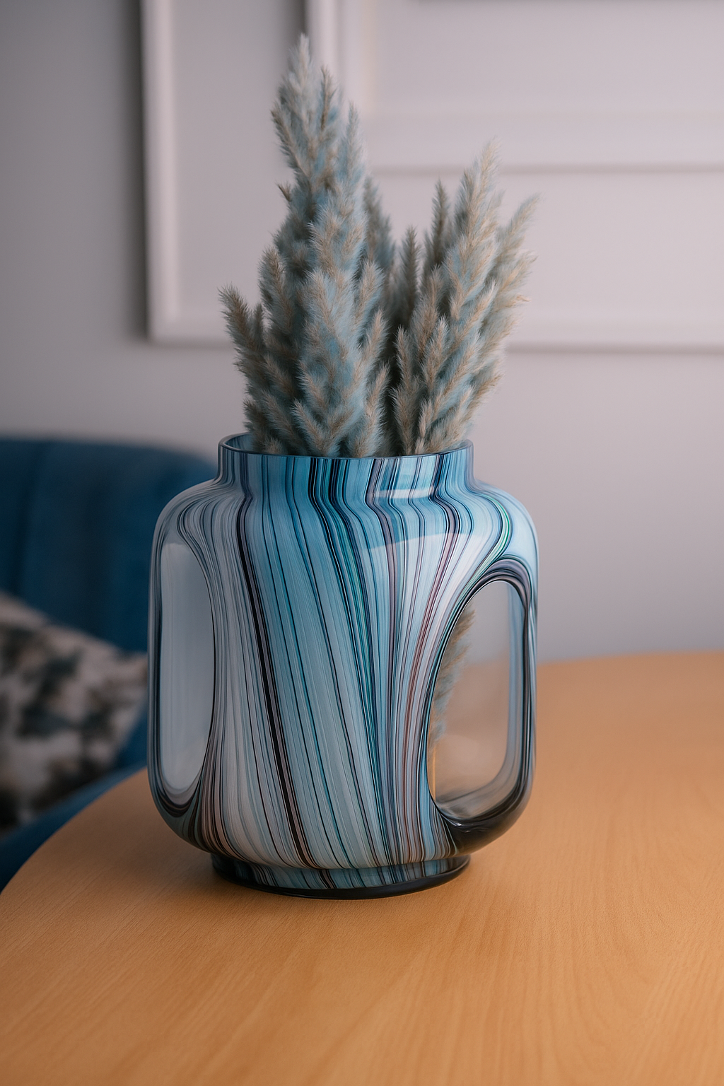 Its organic curves and fluid pattern make it an eye-catching piece—whether styled with pampas grass, dried blooms, or displayed as-is. The Vera Vase brings color, movement, and creativity to your shelf, table, or console.